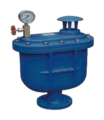 當(dāng)管內(nèi)開始注水時,塞頭停留在開啟位置,進(jìn)行大量排氣,當(dāng)空氣排完時,閥內(nèi)積水浮球被浮起,傳動塞頭至關(guān)閉位置,停止大量排氣;當(dāng)管內(nèi)水正常輸送時,如有少量空氣聚集在閥內(nèi)到相當(dāng)程度,閥內(nèi)水位下降,浮球隨之下降,此時空氣則由小孔排出。當(dāng)抽水機(jī)停止,管內(nèi)水流空時,或遇管內(nèi)產(chǎn)生負(fù)壓時,此時塞頭開啟,吸入空氣確保管線安全。