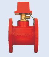 法蘭式水流指示器,用于自動噴水滅火系統(tǒng),它可以安裝在主供水管或橫桿水管上,給出某一分區(qū)域小區(qū)域水流動的電信號,此電信號可送到電控箱,也可用于啟動消防水泵的控制開關(guān)。